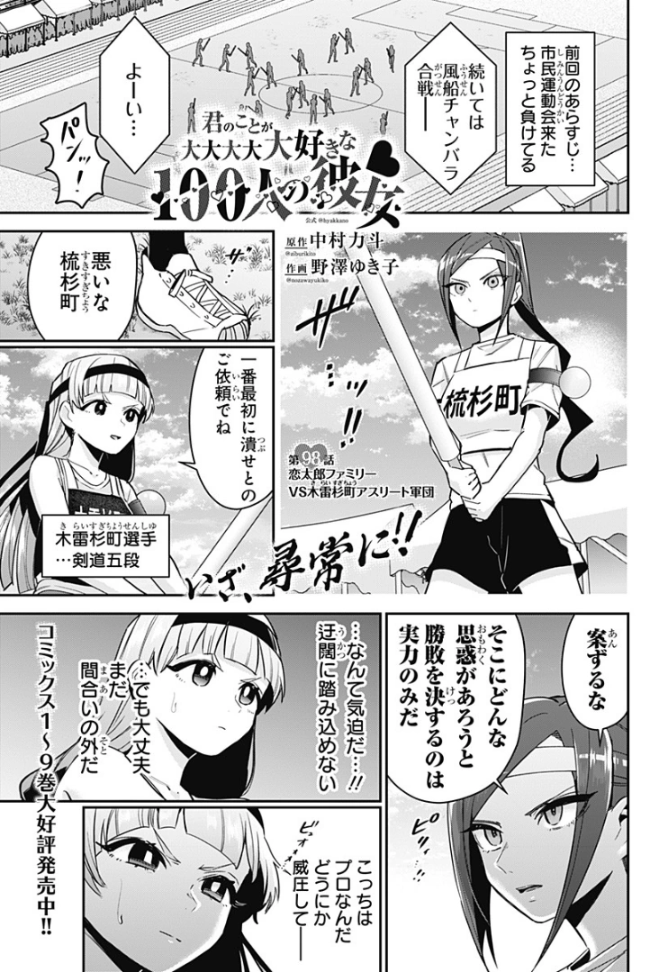 La familia Rentarou vs. El cuerpo de atletas de Kiraisugi es el nonagésimo octavo capítulo del manga 100 Kanojo.